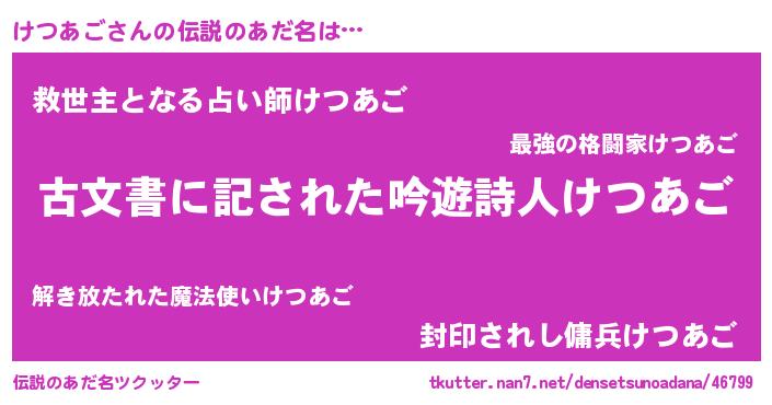 | ヒーロー風カッコイイあだ名 | 『ネオケツアゴ』『愛の使者けつあご』 |