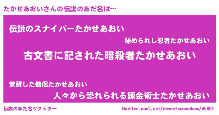 | 意味不明あだ名 | 『永久保存たかせあおい』 |