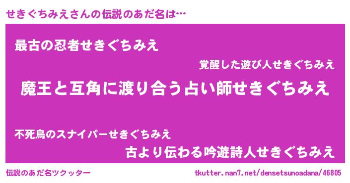 | ヒーロー風カッコイイあだ名 | 『愛の使者せきぐちみえ』『仮面セキダー』 |