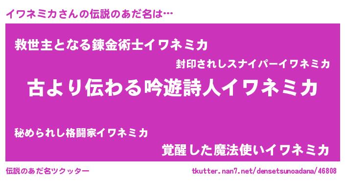 | 意味不明あだ名 | 『永久保存イワネミカ』『自称イワネミカ』 |