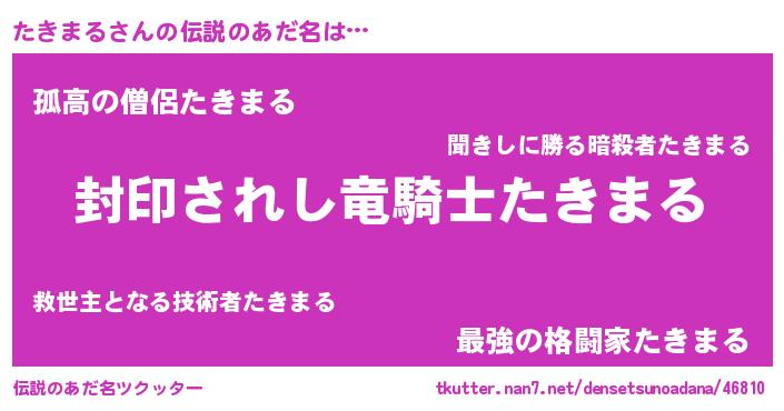 | ヒーロー風カッコイイあだ名 | 『仮面タキダー』『スーパータキマル』 |