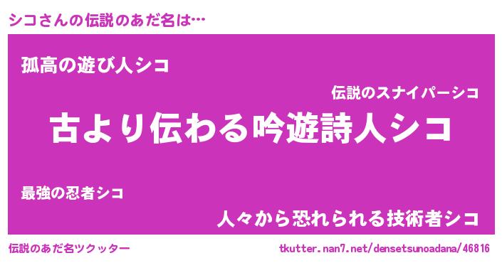 | 意味不明あだ名 | 『自称シコ』『永久保存シコ』 |