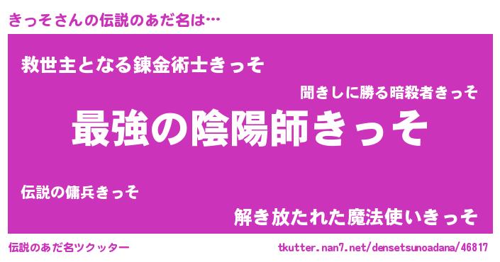 | ファンタジー風あだ名 | 『エターナルキッソー』『カークキッラー』 |