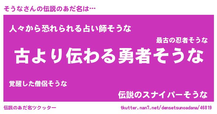 | 胡散臭い通販商品みたいなあだ名 | 『来世でも幸せになれる水素水…その名も「そうな」』 |