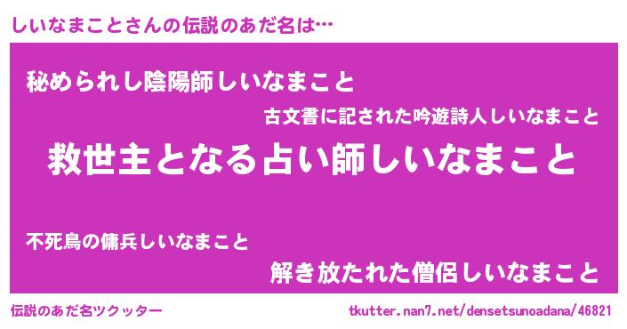 | ヒーロー風カッコイイあだ名 | 『慈愛の使者しいなまこと』 |