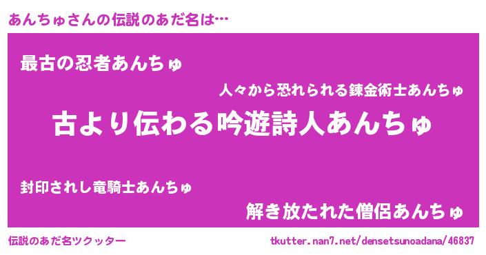 | ヒーロー風カッコイイあだ名 | 『ネオアンチュ』『ウルトラあんちゅマン』 |