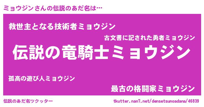 | ヒーロー風カッコイイあだ名 | 『仮面ミョダー』『スーパーミョウジン』 |