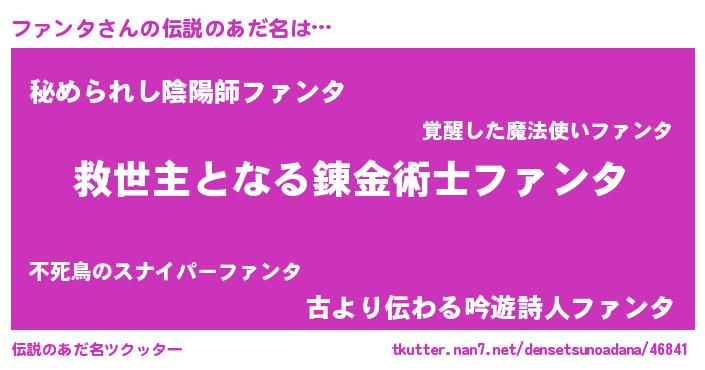 | ヒーロー風カッコイイあだ名 | 『天空の使者ファンタ』『ネオファンタ』 |
