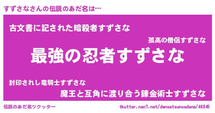 | 意味不明あだ名 | 『住所不定無職すずさな(50歳)』 |