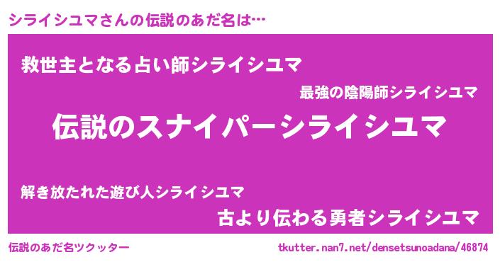 | ヒーロー風カッコイイあだ名 | 『仮面シラダー』『スーパーシライシユマ』 |