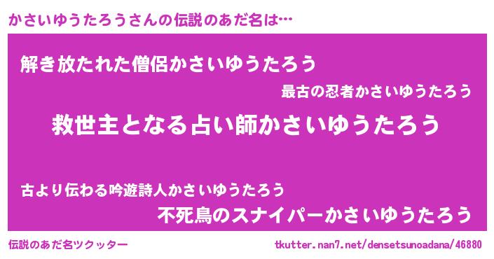 | 意味不明あだ名 | 『住所不定無職かさいゆうたろう(47歳)』 |