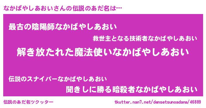 | ヒーロー風カッコイイあだ名 | 『銀牙騎士ナカ』『ネオナカバヤシアオイ』 |