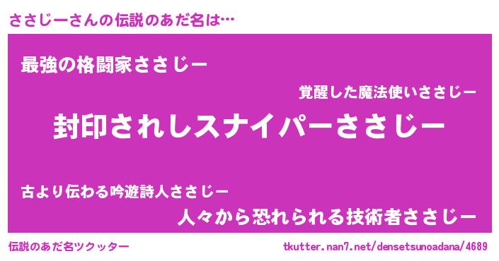 | 胡散臭い通販商品みたいなあだ名 | 『億万長者になれる霊験あらたかなお札…その名も「ささじー」』 |