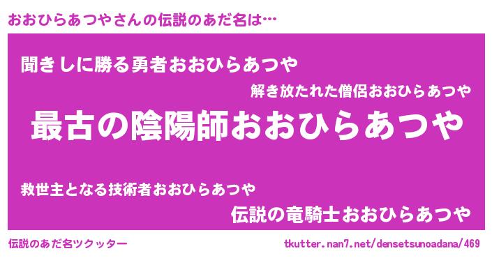 | 意味不明あだ名 | 『おおひらあつやフォーエバー』 |