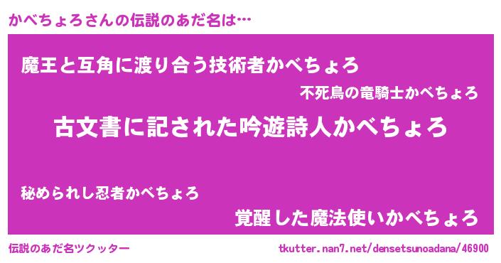 | ヒーロー風カッコイイあだ名 | 『ネオカベチョロ』『仮面カベダー』 |