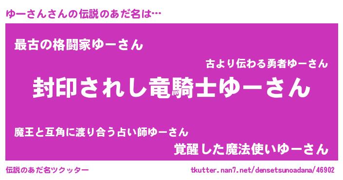 | 胡散臭い通販商品みたいなあだ名 | 『あなたにだけ特別に提供する100年もののヴィンテージワイン…その名も「ゆーさん」』 |