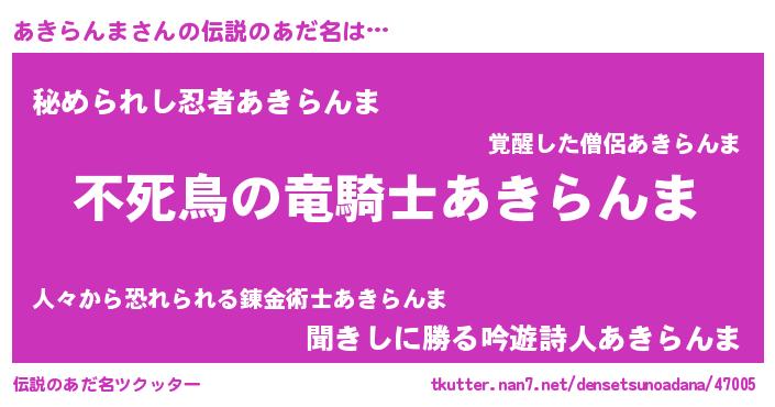 | ヒーロー風カッコイイあだ名 | 『スーパーアキランマ』『仮面アキダー』 |