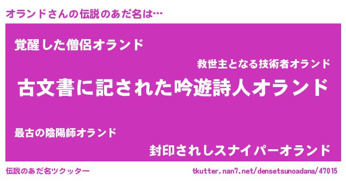 | ヒーロー風カッコイイあだ名 | 『ネオオランド』『究極戦士オランド』 |