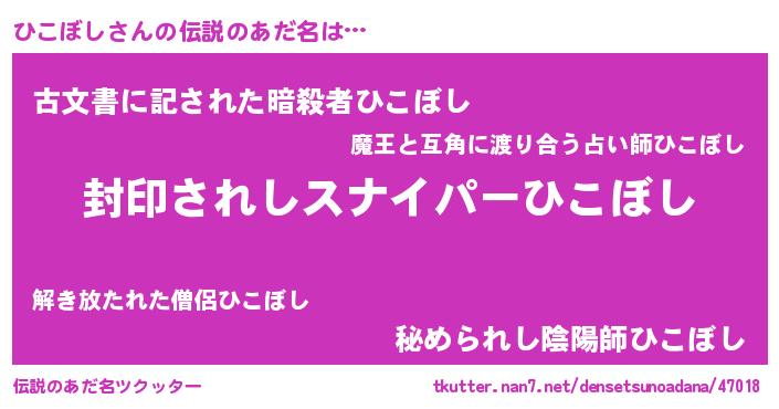 | 意味不明あだ名 | 『自称ひこぼし』『つくし科ひこぼし属』 |