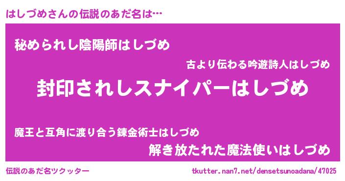 | ファンタジー風あだ名 | 『ハシフェル』『ユリハシヴァット』 |