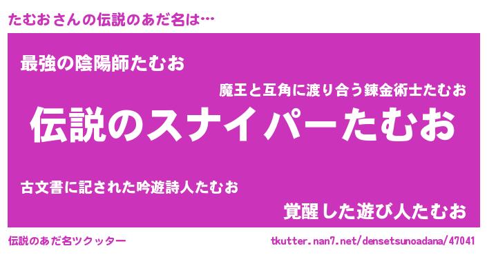| ヒーロー風カッコイイあだ名 | 『スーパータムオ』『ウルトラたむおマン』 |