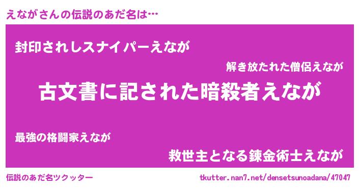 | 男性向けラノベタイトル風あだ名 | 『Re:えながから始める異世界生活』 |