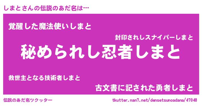 | 意味不明あだ名 | 『しまとフォーエバー』『永久保存しまと』 |