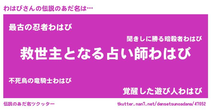 | ヒーロー風カッコイイあだ名 | 『天空の使者わはび』『魔戒騎士ワハ』 |