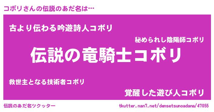 | 料理風あだ名 | 『コボリのカルパッチョ風』 |