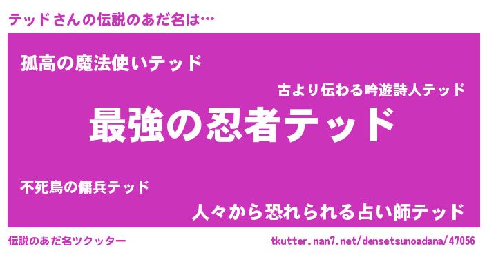| ヒーロー風カッコイイあだ名 | 『ウルトラテッドマン』『黄金騎士テッ』 |