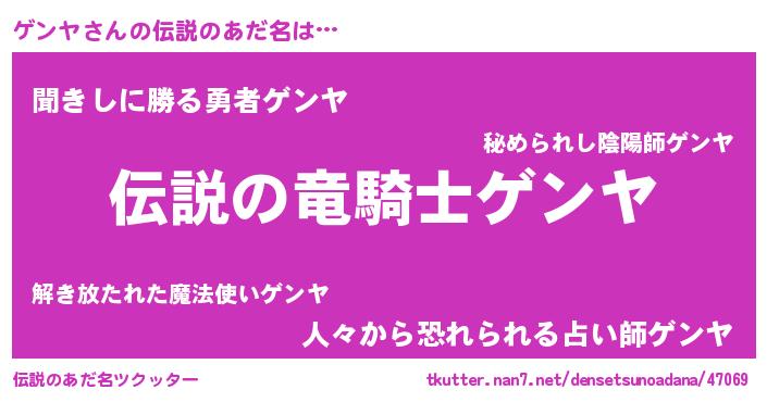 | ヒーロー風カッコイイあだ名 | 『スーパーゲンヤ』『ネオゲンヤ』 |