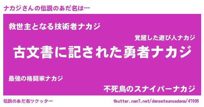 | ファンタジー風あだ名 | 『ナカディッシュ』『ゼナカトゥ』 |