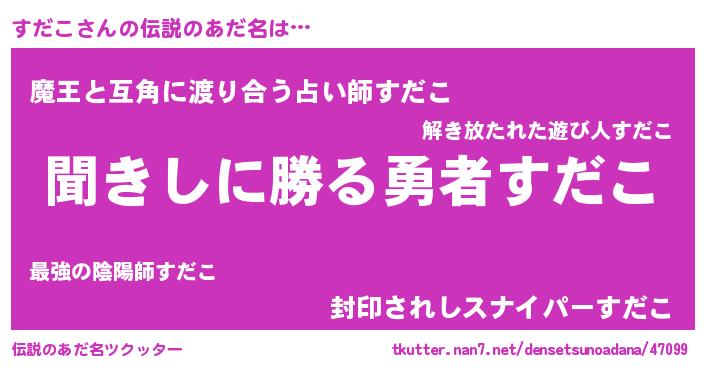 | ヘコむあだ名 | 『すだこ(遠い目)』『すだにゅー』 |