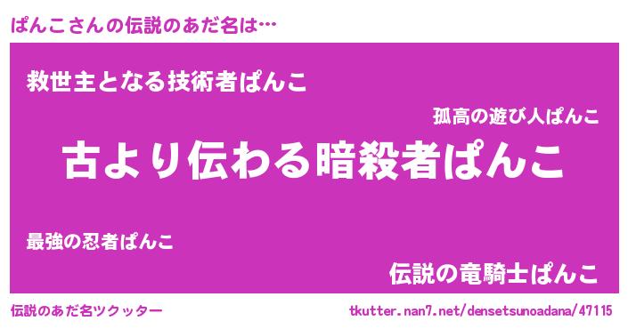 | ヘコむあだ名 | 『ぱんこ(爆)』『ぱんにー』『ぱんを』 |