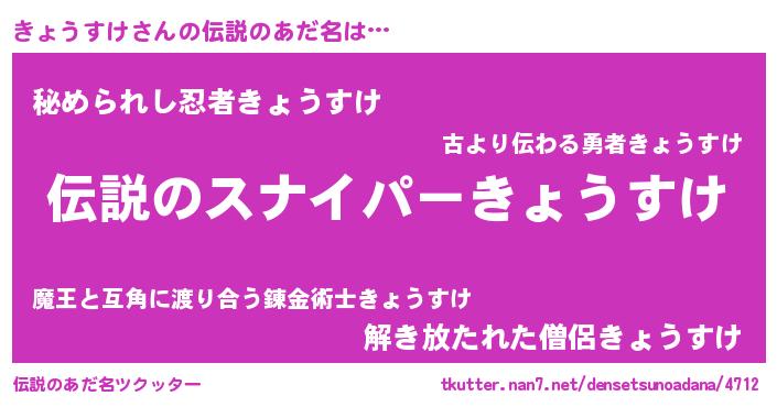 | 胡散臭い通販商品みたいなあだ名 | 『必ず成功する霊験あらたかなお札…その名も「きょうすけ」』 |