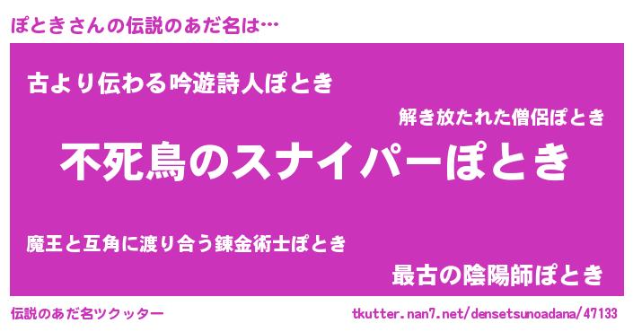 | 女子向けラノベタイトル風あだ名 | 『ぽとき姫と円卓の騎士』 |