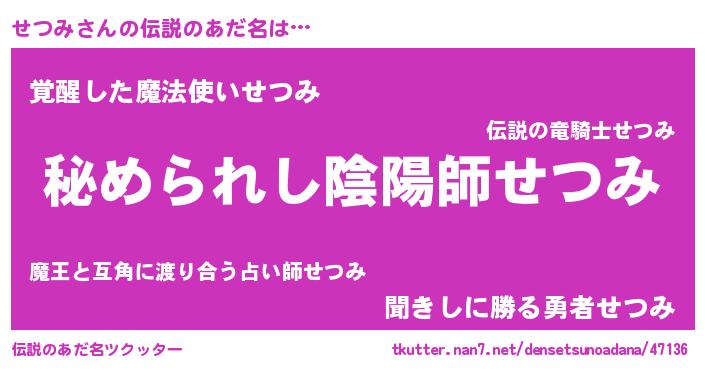 | ファンタジー風あだ名 | 『カークセツラー』『エターナルセツミー』 |