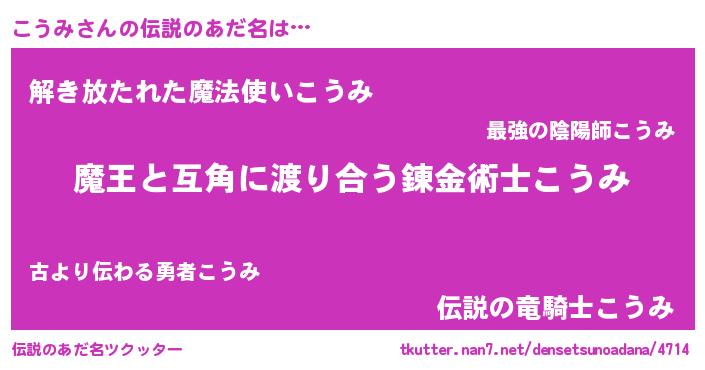 | ヒーロー風カッコイイあだ名 | 『友情の使者こうみ』『幻影騎士コウ』 |