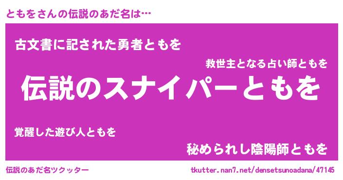 | 胡散臭い通販商品みたいなあだ名 | 『必ず成功する霊験あらたかなお札…その名も「ともを」』 |