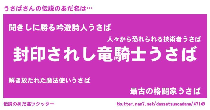 | ヘコむあだ名 | 『うさにー』『うさば(小並感)』 |
