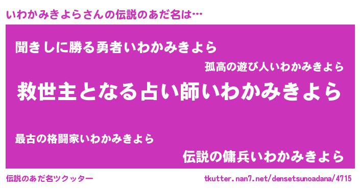 | 意味不明あだ名 | 『自称いわかみきよら』 |