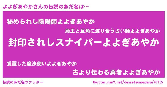 | 胡散臭い通販商品みたいなあだ名 | 『億万長者になれる霊験あらたかなお札…その名も「よよぎあやか」』 |
