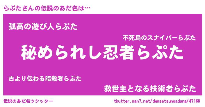| 意味不明あだ名 | 『自称らぷた』『らぷたフォーエバー』 |