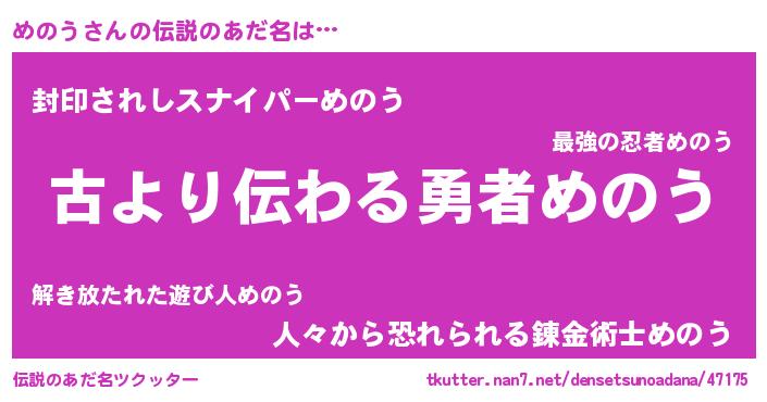 ヒーロー風カッコイイあだ名 | 『ネオメノウ』『スーパーメノウ』 |