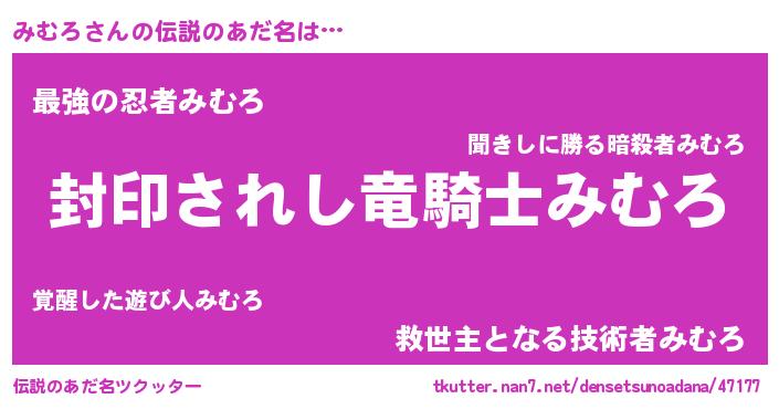 | ヒーロー風カッコイイあだ名 | 『スーパーミムロ』『最強戦士ミムロ』 |