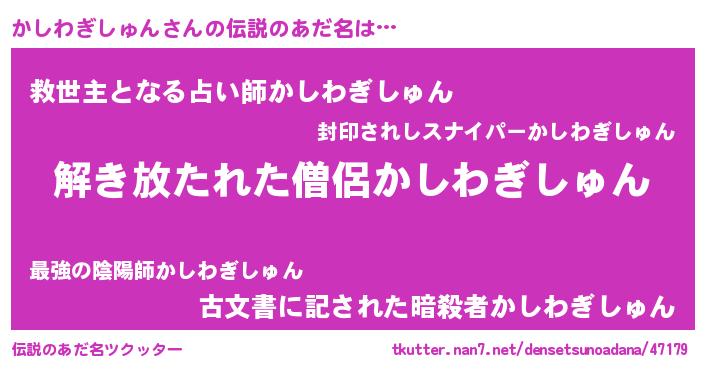 | 女子向けラノベタイトル風あだ名 | 『かしわぎしゅんの卵を拾いまして』 |