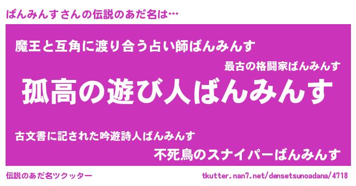 | ヒーロー風カッコイイあだ名 | 『魔戒騎士バン』『友情の使者ばんみんす』 |