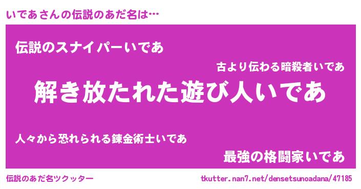 | 意味不明あだ名 | 『とにかく怪しいいであ』『自称いであ』 |