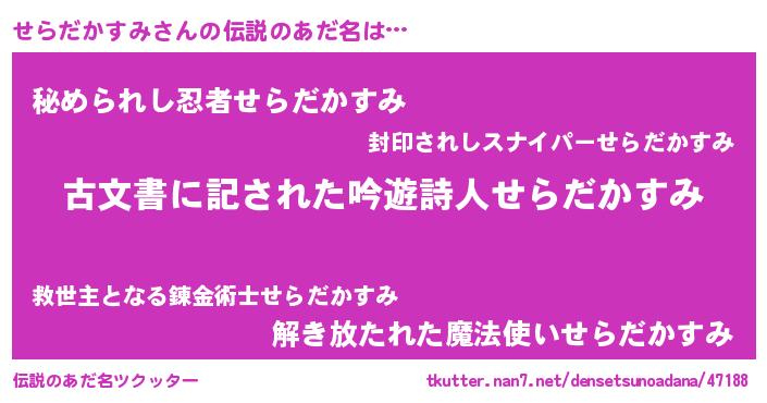 | 意味不明あだ名 | 『永久保存せらだかすみ』 |