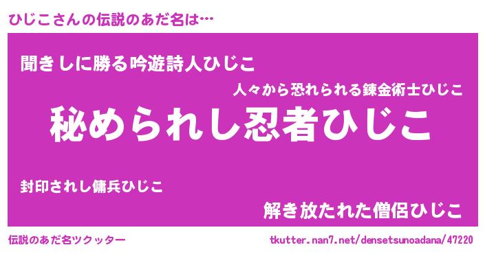 | ファンタジー風あだ名 | 『ゼヒジトゥ』『エターナルヒジコー』 |